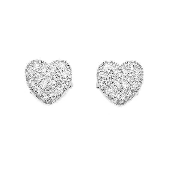 Ohrringe aus rhodiniertem Silber 925 / °°° mit Herz besetzt mit Zirkonia; Größe 0,6 cm