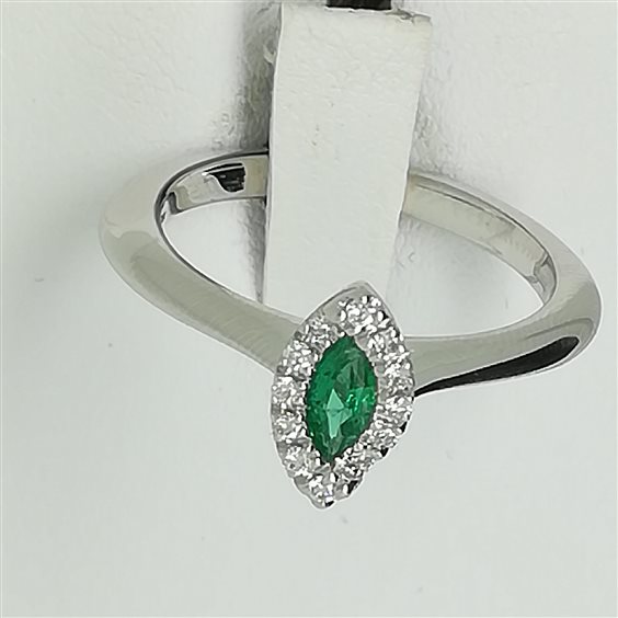 Frauenring aus Weißgold mit 0,16 ct Smaragd und 0,08 g Diamanten ct