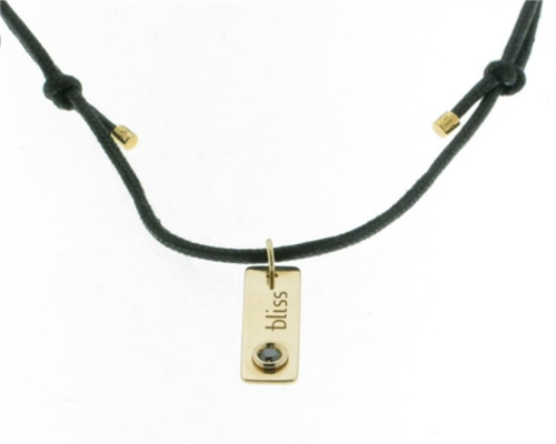 BLISS PENDANT ROMEO MODELL MIT RECHTECKIGEM ANHÄNGER MIT 18KT ROSE GOLD UND SCHWARZEM DIAMANT BRILLIANT CUT CT.0,07; SCHWARZES BAND MIT PINK NODES UND TERMINALS IN PINK GOLD, ANHÄNGERLÄNGE MIT RING 24mm X BREITE 7,20mm X DICKE 0,90mm.