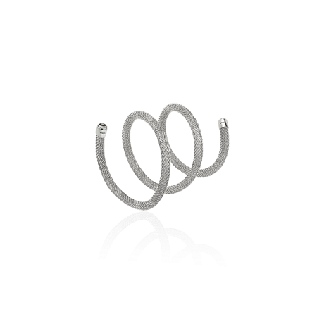 Polierter Stahlpullover, formbar im Kleidungsstück, mit personalisierten Terminals aus poliertem Stahl. New Snake ist ein einzigartiges Juwel: Leicht und flexibel, zeichnet es sich durch ein edles Metallgeflecht aus, in dem eine weiche und formbare Seele fließt, die Windungen und Lichtspiele anzieht, die modelliert werden müssen. Auf den Fotos sehen Sie die Verwendung sowohl als Halskette als auch als Armband, Knöchel oder Gürtel. WARNUNG: Biegen Sie sich nicht zu stark und machen Sie keine Knoten zu fest. Nach dem Gebrauch wird empfohlen, den Knoten in die Box zu legen.