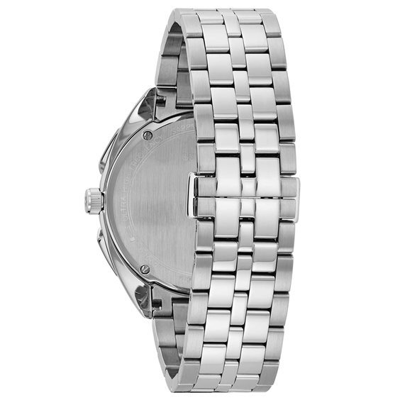 Aus der neuen CURV-Kollektion. Das weltweit erste Werk des geschwungenen Chronographen verfügt über eine Hochleistungs-Quarztechnologie mit einer Frequenz von 262 kHz für unerreichte Präzision. Fünfzeiger-Chronograph in Edelstahlgehäuse, dunkelgraues Zifferblatt, gewölbtes Saphirglas, verschraubter Kasten, Edelstahlarmband mit Doppelschließe, Wasserdichtigkeit bis 30 Meter.