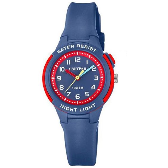 Uhr CALYPSO Collection: Junior, Die Form des Zifferblattes ist rund, der Durchmesser des Gehäuses ist 25 mm, das Armband ist in Silikon, Die Uhr hat eine Wasserdichtigkeit von 10 Atmosphären, Quarzwerk. Der Artikel wird mit Garantie und Originalverpackung geliefert.