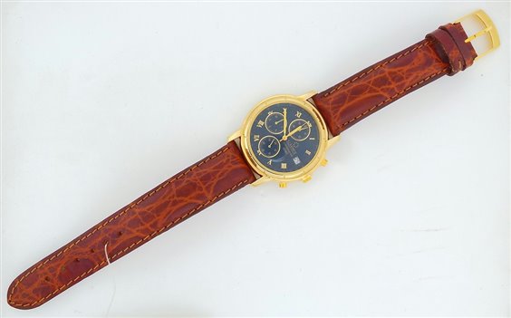 Cadet Chronostar Mann mit vergoldetem Stahl 36 mm Gehäuse, Chronographenfunktion, Datumsanzeige, Schnapp Krone und Boden wr 3 atm. Lederband mit Seitennähten. 2 Jahre Garantie.