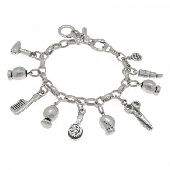 Damen Cyclon Armband aus der Jobs Kollektion. Juwel aus silberfarbenen Zamak mit Charms Aufruf Friseur Werkzeuge. Modell mit Verschluss Modell Tiffany. Juwel von einer Größe, von 17 Cm bis 20 Cm.