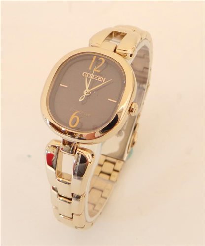 Uhr nur Zeit. Gehäuse aus poliertem Roségold (PVD) Stahl, 28x25,5 mm. Dicke 9 mm. Körperarmband 15/10 mm. Eco-Drive-Bewegung (unendlich leichte Ladung), Gangreserve 6 Monate: Stunden-Minuten-Sekunden. Saphirglas. Mattes braunes Zifferblatt, Index und polierte Zeiger. Verstellbares Armband aus roségoldplattiertem Stahl mit Faltschließe mit zwei Knöpfen. Wasserdicht 5 ATM. (Bar). Gewicht 59 Gramm Garantie 2 Jahre.