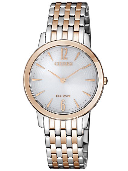 Citizen Eco-Drive-Frau mit Gehäuse und Armband aus zweifarbigem Stahl, Saphirglas, Wr. 5bar. Internationale Garantie 2 Jahre Citizen.
