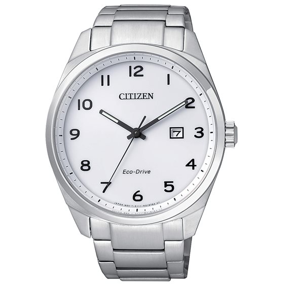 Eco-Drive verantwortlich mit Licht von 180-Tage-Gangreserve. Edelstahlgehäuse mit verschraubtem Boden fest. Edelstahlarmband. WR 10 BAR. Gehäusedurchmesser 42 mm. nur die Zeit
