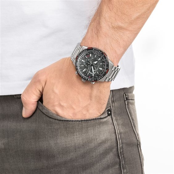 ÖKO-ANTRIEBSBEWEGUNG LADEGERÄT MIT 10 MONATEN-LADE-RESERVE 5-KANAL-FUNKSTEUERUNGSFUNKTION. KOFFER UND ARMBAND AUS STAHL, CHRONO-ALARM, WASSERDICHT 20 BAR