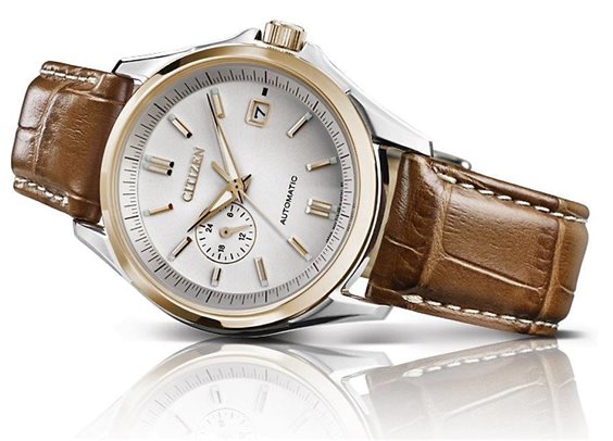* In mm Stahlgehäuse. 40, feststehenden Ring, Krone und wählen Indizes in Gelbgold Farbe * Gehäuseboden mit Dachfenster * Lederarmband braun Farbe versehen * Saphirglas * WR 10 bar * mechanisches Uhrwerk mit Automatik mit Datum und engagierten Zähler 24H Wicklung