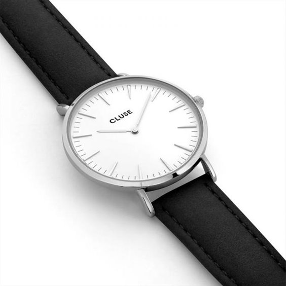 Nur Time Clock aus der Sammlung von Frau Cluse La Bohème. Modell Made In Stahl und Naturleder. Diese Uhr hat Cassa 38mm, Mit Oberfläche Stahl, Dial weiße Farbe und Mineralglas. Das Gehäuse hat eine Dicke von 7 mm. Dieses Modell hat Armband Leder Farbe Schwarz, mit Schnalle Schnalle. Der Widerstand ist All'Acqua von 3 Atm. Diese Uhr hat ein Gesicht in Übergröße mit minimalen Details und Finishing ein sehr dünner. Der Bügel und ‚Made in 100% Rindsleder. ZERTIFIKAT Garantie von 2 Jahren