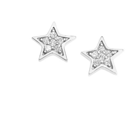 Ohrringe Comete Schmuckkollektion Stella Referenz ORB 920. Ohrstecker ausschließlich aus 18 Karat Weißgold (750 ‰) in Sternform - Größe 0,5 x 0,5 cm. Die Ohrringe haben einen Pavé von Diamanten für insgesamt Ct. 0,06 Farbe G Reinheit SI. Schmetterlingsverschluss Made in Italy