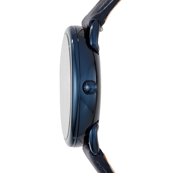 Clock Frau Fossil Tailor Collection. Modell Gekennzeichnet von Fall Stahl, Glossy Finish, Farbe Blau und Lederband, Farbe blau. Taktgeber mit Multifunktions-Quarz-Uhrwerk mit Gehäuse aus Größe von Ihnen 35. Der All'Acqua Widerstand 5 Atm.