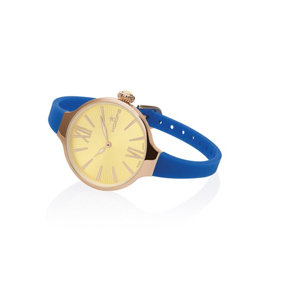 Uhr Frau Reifen, 2570lgp02, Gelb Blau, Splash Gold Collection, Neuheit 2017, Bewegung: 2 Bälle; Riemen: Silikon; Wasser: beständig; Glas: transparent konvex. Rose Stahlgehäuse, Silikonband, Marke: Hoops Kollektion: splash gold Referenz: 2570LGP02