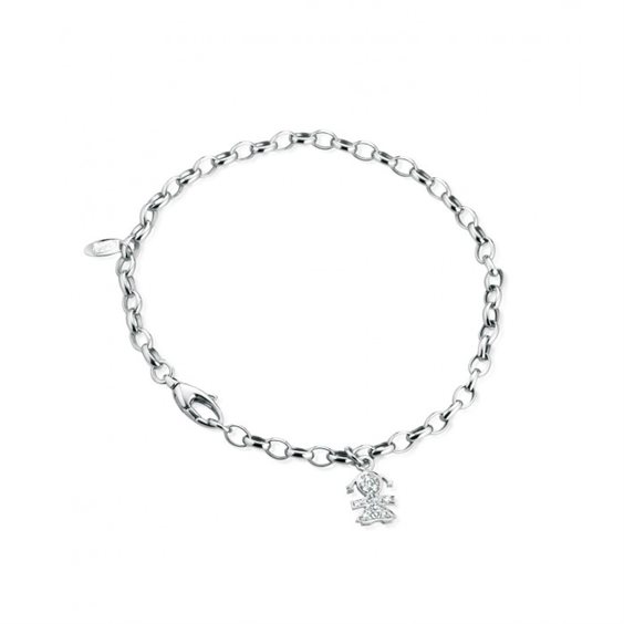 LE BEBE Armband aus 18 kt Weißgold, poliert, mit einem Anhänger, femininer Charme, in Pavégold mit Diamanten im Brillantschliff, 18 Steine für insgesamt 0,05 ct. Cm 20 Garantiezertifikat für Steine.