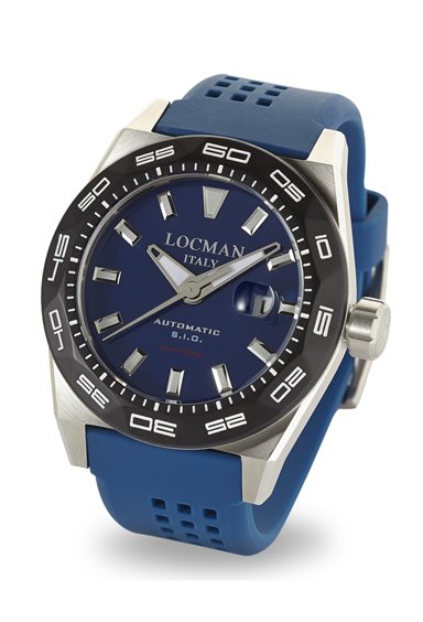 Uhr mit Titanium und 45mm Edelstahlgehäuse, professionelle 30 atm Felge mit Schraubkrone, Automatikwerk mit Produktionskaliber SIO Locman (Italienische Uhrmacherschule), applizierte Indizes und Saphirglas, Silikonband mit Widerhakenverschluss, in beide Richtungen drehbarer Drehring. GARANTIEBOX