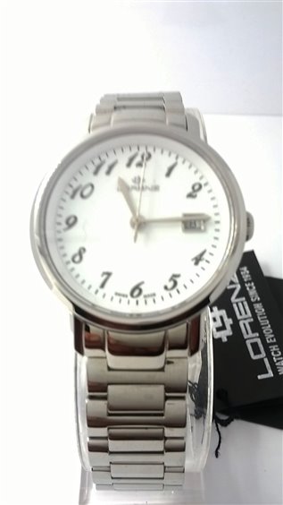 Klassische Damenuhr mit arabischen Zahlen, Zentralsekunde und Datumsanzeige bei 3 Uhr.