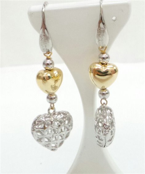 Versilberte bronze baumeln ohrringe mit zwei herzen, eine gelbe messung 9 x 9 mm und eine silber messung 1616 x 16 mm.schluss mit lamo. Garantiezertifikat