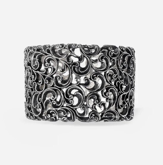 Poliertes Silberarmband, Inlay-Inlay mit seitlichem Öffnungsscharnier für den Träger, hoch mm 44