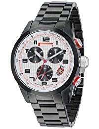 Pirelli Herrenuhr RACING COLLECTION: Swiss made, entspiegeltes Saphirglas, Wasserdicht bis 100m, schwarzes Stahlgehäuse, verschraubte Krone, schwarzes Stahlarmband, Kohlefaser-Zifferblatt