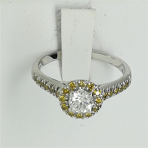 Tiffany Modell Ring, zentraler farbloser Brillantschliff Diamant mit Kontur und ausgefallenem ct Schaft. 0.26