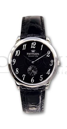 Pryngeps Clock Nur Zeit A620 / Quarzwerk. Rundes Stahlgehäuse, 40mm. Gepresste Krone. Mineralglas Druckstahlunterlage. Schwarzes Zifferblatt Weiße arabische Kugeln und Zahlen. Schwarzes Lederband Wasserdicht 3 atmospheres