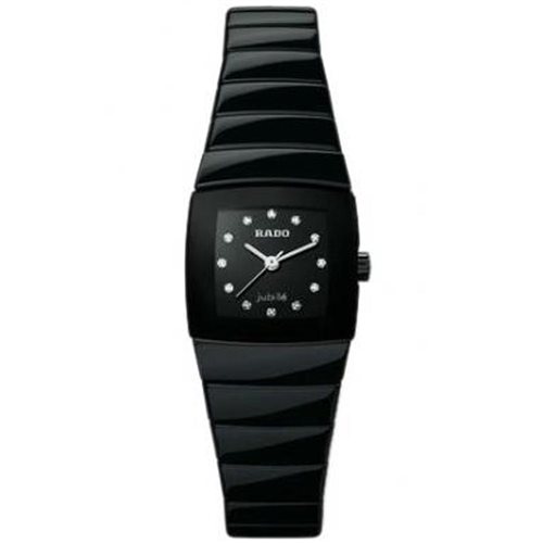 RADO SINTRA Sammelbox aus schwarzer Keramik schwarzes Zifferblatt mit 12 Diamanten (JUBILE ‚) zu Indexen wasserdicht 3 ATM QUARTZ BEWEGUNG Armband schwarzer Keramik.
