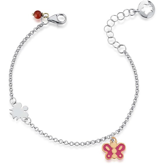 Baby-Armband oder kleines Mädchen von Roberto Giannotti aus der Baby-Kollektion. Armband mit Weißgold Engel, Charm in Form von rosa Schmetterling mit rosa Emaille und rote Koralle Charme. Das Armband Länge ist 12/14 Cm, Engel mit 0,7 Cm Basis und Höhe 0,7 Cm, Schmetterling mit Basis 0,8 Cm und Höhe 0,7 Cm und Durchmesser Coral: 2 Mm.
