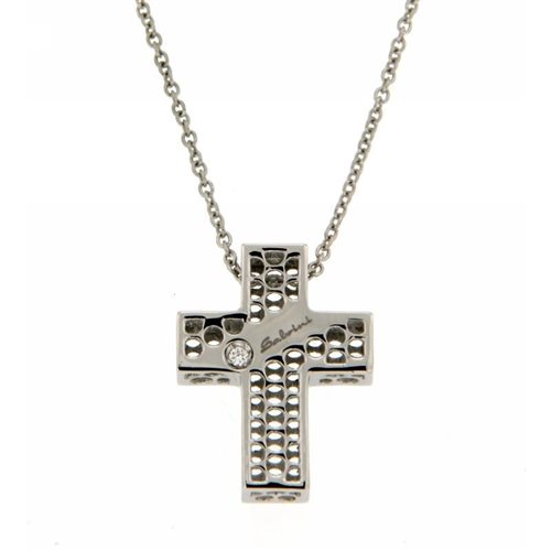 Halskette aus 9 kt Weißgold mit Kreuzanhänger, Länge verstellbar von 45 cm bis 40 cm