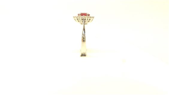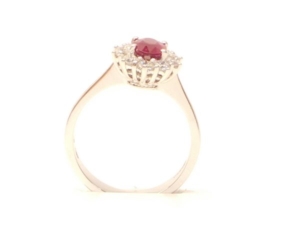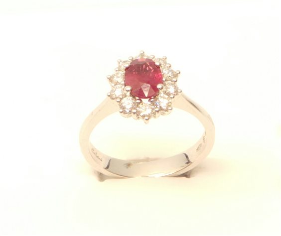 Salvini-Ring aus poliertem Weißgold mit ovalem Rubin (ct. 0,83) aus einer Reihe von Diamanten mit Markierungsrahmen (Diamanten im Brillantschliff von 0,44 G / H). Maßnahme 13 kann bearbeitet werden. Ringkopfgröße: 11,8 mm x 9,9 mm. - h. 6,6 mm. Garantie und Echtheitszertifikat enthalten.