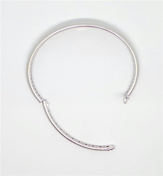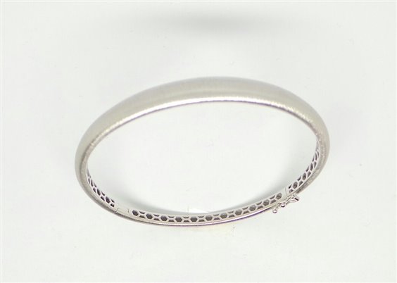 Starre Armband in Weißgold, Seidenarbeit, ovale Form, Umfang cm 6 für Handgelenke von 17/18 cm. Seitenverschluss mit Sicherheit: Der Mittelteil hat eine Arbeitsbreite von 0,8 cm, die auf eine Größe von unter 0,5 cm abfällt. Garantieschein.
