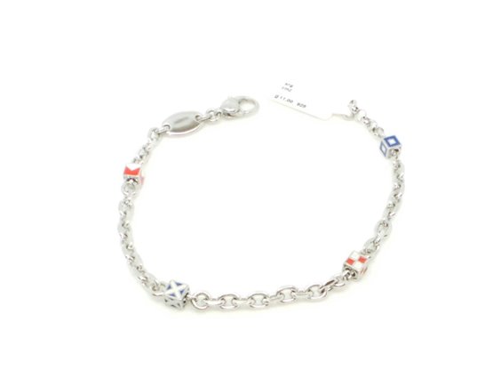 Silberarmband mit Kette rolo glänzend Durchmesser mm 4,4 mm emaillierter Würfel durchsetzt mit 4,6 x 4,6 .chiusura mit Karabiner
