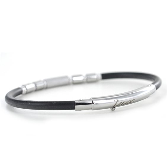 Kautschukarmband mit Zentraleinsatz aus Silber 925/000 mit polierter Oberfläche und verstellbarer Stahlschließe.