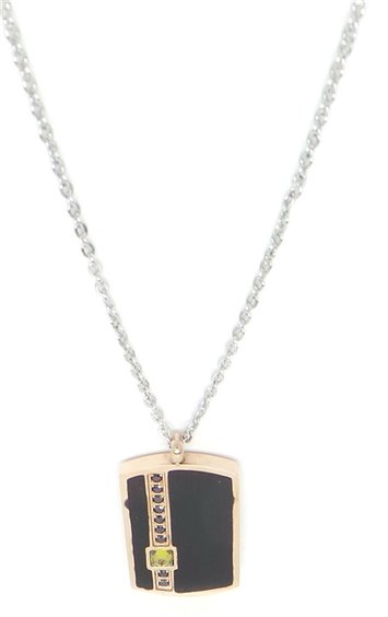 Collection 4US men 316 l stainless steel hypoallergenic with long cable knit up to 51 cm, ability to attach closer to 45 cm, with military-type plaque treated in pvd gold Rosé at the edges and on the back, in the middle is black pvd-treated with black crystals and colored yellow zircon cutting saddle.