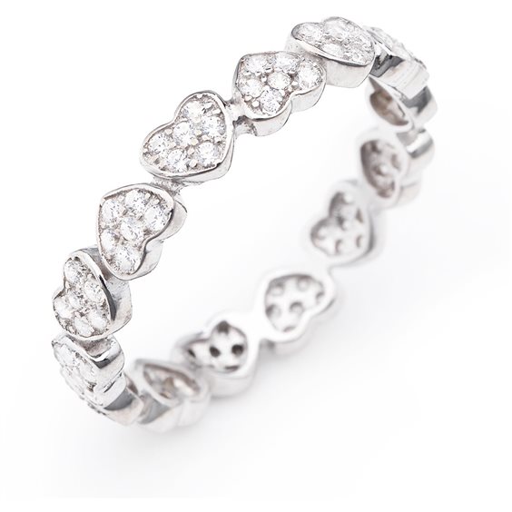 Ring in 925 / °°° silver rhodium with hearts studded with white cubic zirconia. Several sizes available upon request