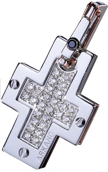 Cross in white gold and rose 18 Kt. Arkano of Pt with 24 diamonds. 24 G VVS brilliant-cut, No. 1 Black Diamond Pt. 1.5, detachable mesh to have the opportunity to engage in the two sides