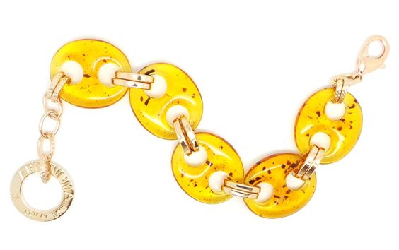 marine link bracelet, colored resin and bronze clasp, total length 22 cm, height 24mm mesh
