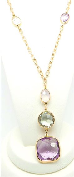 Collier rose gold 18 kt with natural stones with amethyst, rose quartz, prasiolite, THE NECK SIZE 10.5 cm 45 gr. THE COURT CM 5, STONE FINAL MEASURE 15.5 X 15.5 MM.