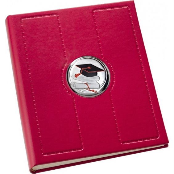 ATELIÈR – Graduation Photo Album 20x25 Refined Atelièr photo album dedicated to graduation, covered in red eco-leather and adorned with a silver-plated medallion depicting the iconic graduation cap and diploma tied with a red ribbon. A sophisticated and meaningful design, perfect for preserving memories of this special milestone. Ideal as a graduation gift or keepsake.