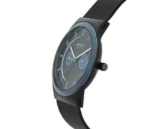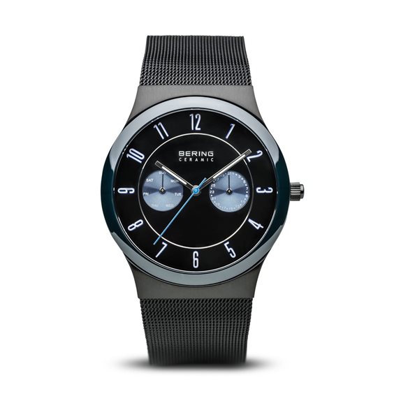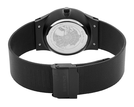 Sapphire crystal, milano knit strap, steel case and titanium backing, date, 3 year warranty