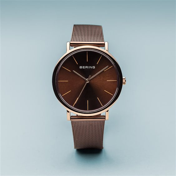 Bering Classic Unisex Time Watch. 36 Mm Dimension Case, Shiny Pink Gold and Made of Stainless Steel. Model With Brown Colored Strap, Made In Milan, With Shutter Release. This Brown Dial Dial In Sunray, With Sapphire Glass. Finishing Is Pink Oro Ip. Quartz Movement Model And 3 Atm Water Resistance. Additional Features: 3 Years Warranty.