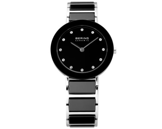 Steel and black ceramic strap, ceramic ring, swarosky crystal indices, sapphire crystal, 3 year warranty