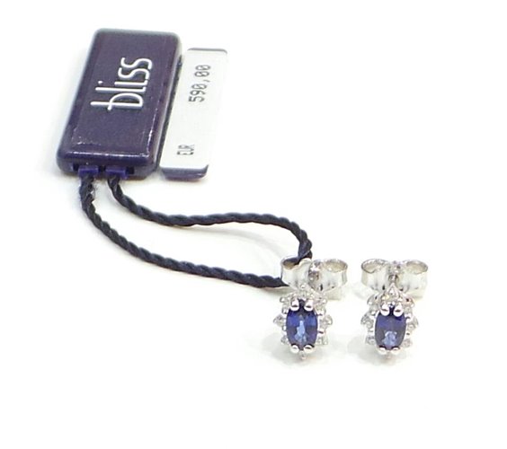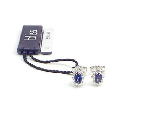 Mount earrings in white gold 750/1000 gr 1.65, with Central 0.60 carats total sapphires and brilliant Carat 0.08 boundary. Fence post and butterfly.Certificate of guarantee Bliss.