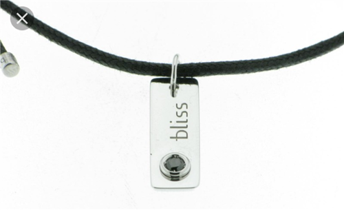 BLISS PENDANT ROMEO MODEL WITH RECTANGULAR PENDANT WITH 18KT WHITE GOLD AND BLACK DIAMOND BRILLIANT CUT CT.0,07. BLACK STRAP WITH WHITE KNOTS AND TERMINALS IN WHITE GOLD. LENGTH PENDANT WITH RING 24mm X WIDTH 7,20mm X THICKNESS 0,90mm
