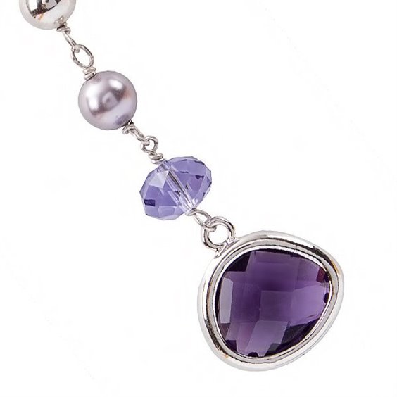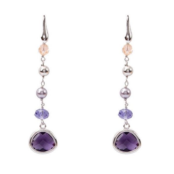 Earrings with gamcio a fish hook in rhodium bronze. swarovski crystal briolette purple, tanzanite colored pearls and crystals. total length cm.8