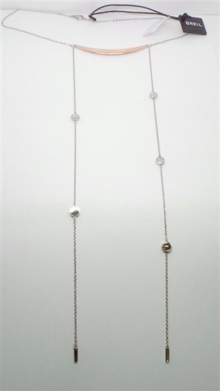 STAINLESS STEEL NECKLACE ACCENTIVATING IT IS COMPOSED OF TWO SIDE CHAINS WELDED LATERALLY TO A STAINLESS STEEL PLATE IN THE SHAPE OF HALF MOON, ADJUSTABLE CLOSURE. BREIL CERTIFICATE