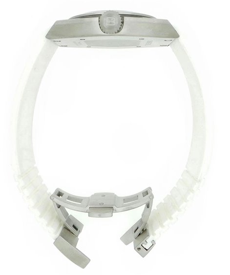 Clock with quartz movement, stainless steel case and transparent glass-ceramic, diameter 40 mm, white dial, white silicone strap with deployant clasp, WR 10 ATM