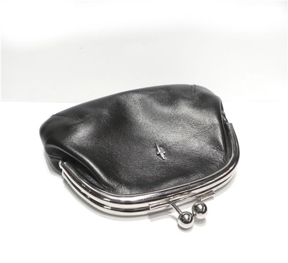 Purse/clutch bag in black calf leather with logo in Silver 925. With box and bag to store it without ruining it. 14 * 13 measures, with interlocking closure. Made in Italy