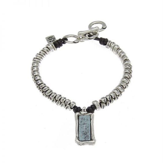 Alloy bracelet and leather with Murano crystal, length varying from 16 cm to 19 cm