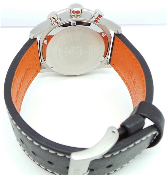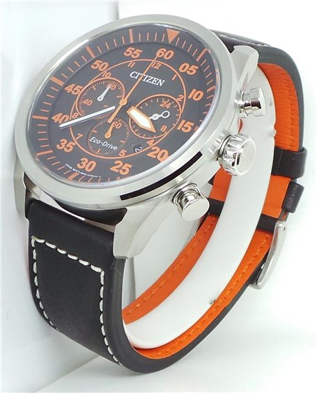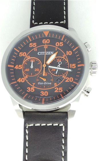 Citizen CA4210‑08E – 45 mm men’s black stainless steel solar chronograph with leather strap, 24-hour function A refined aviator‑style chronograph designed for those seeking high functionality in a modern, sporty case. The approximately 45 mm black satin-finish stainless steel case houses a black dial with Arabic numerals, sub-dials, luminous hands in red and black. Powered by a solar Eco‑Drive movement (calibre B620), it offers around 9 months of power reserve using any light. Paired with a black leather strap with pin buckle, scratch-resistant mineral crystal, and 10 ATM water resistance — this watch blends technical precision with everyday elegance. Case diameter: ~45 mm Thickness: ~13 mm Case material: Satin black stainless steel Movement: Eco‑Drive solar (calibre B620), ~9-month reserve Features: 60-min chronograph/1 s, 24h display, date Crystal: Scratch-resistant mineral Dial: Black with lumed indices and red-black hands Strap: Black leather with pin buckle Water resistance: 10 ATM (100 m) Gender: Men Style: Aviator‑sport, technical‑elegant Una scelta ideale per chi cerca un cronografo solare elegante, preciso e adatto a uno stile di vita dinamico e sofisticato.