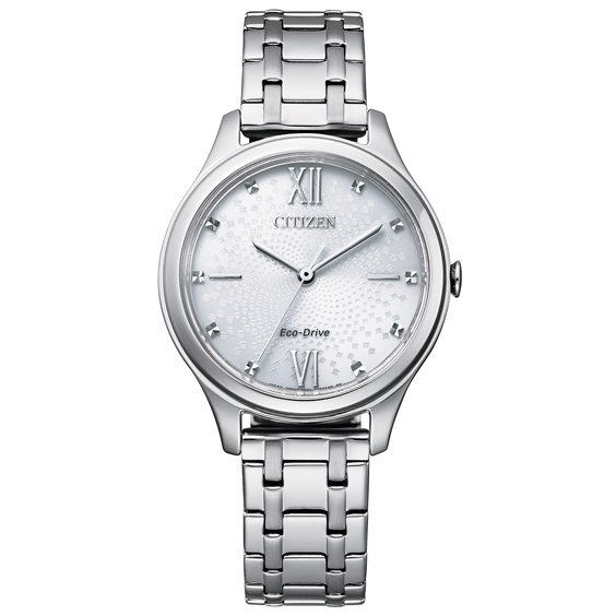 32 mm women’s steel watch with white patterned dial and solar movement A refined and timeless piece featuring a 32 mm stainless steel case and a subtly patterned white dial. Slim hands and mixed hour markers with Roman numerals create a discreet, elegant look. Powered by a solar movement with up to six months of autonomy, it requires no battery changes. A mineral crystal protects the dial, while the steel bracelet with push-button clasp ensures both comfort and security. Water-resistant to 5 ATM, it's ideal for everyday wear with a touch of class. Case diameter: 32 mm Case thickness: approx. 7 mm Movement: Solar, up to 6 months of autonomy Functions: Time only Crystal: Mineral Strap: Stainless steel Clasp: Push-button deployant Water resistance: 5 ATM Gender: Women Style: Elegant, daily wear Lightweight, radiant and worry-free: the perfect accessory to accompany you every day with quiet elegance.